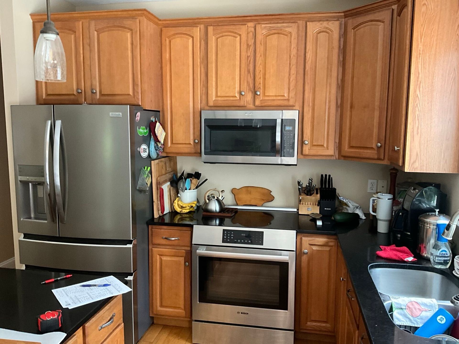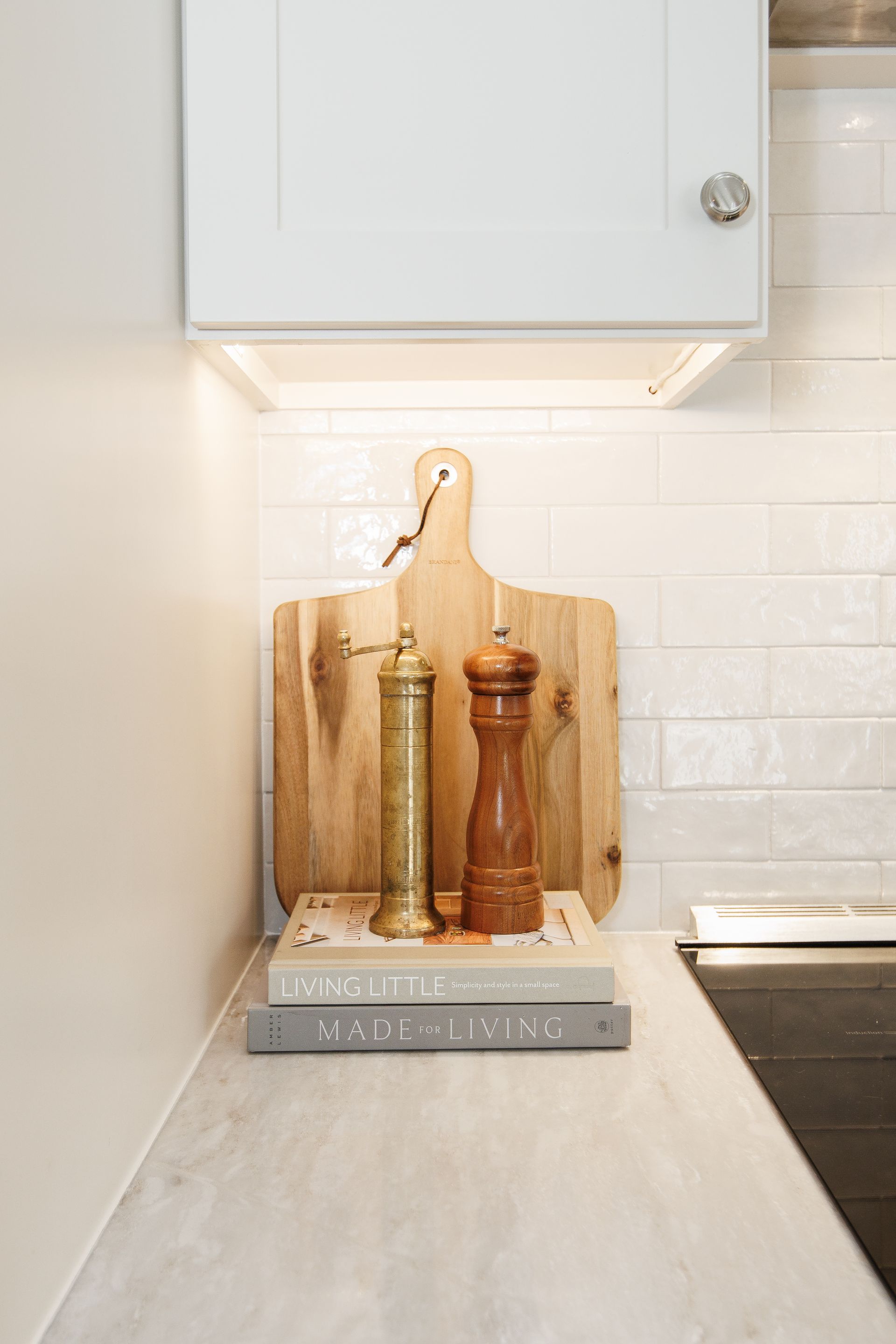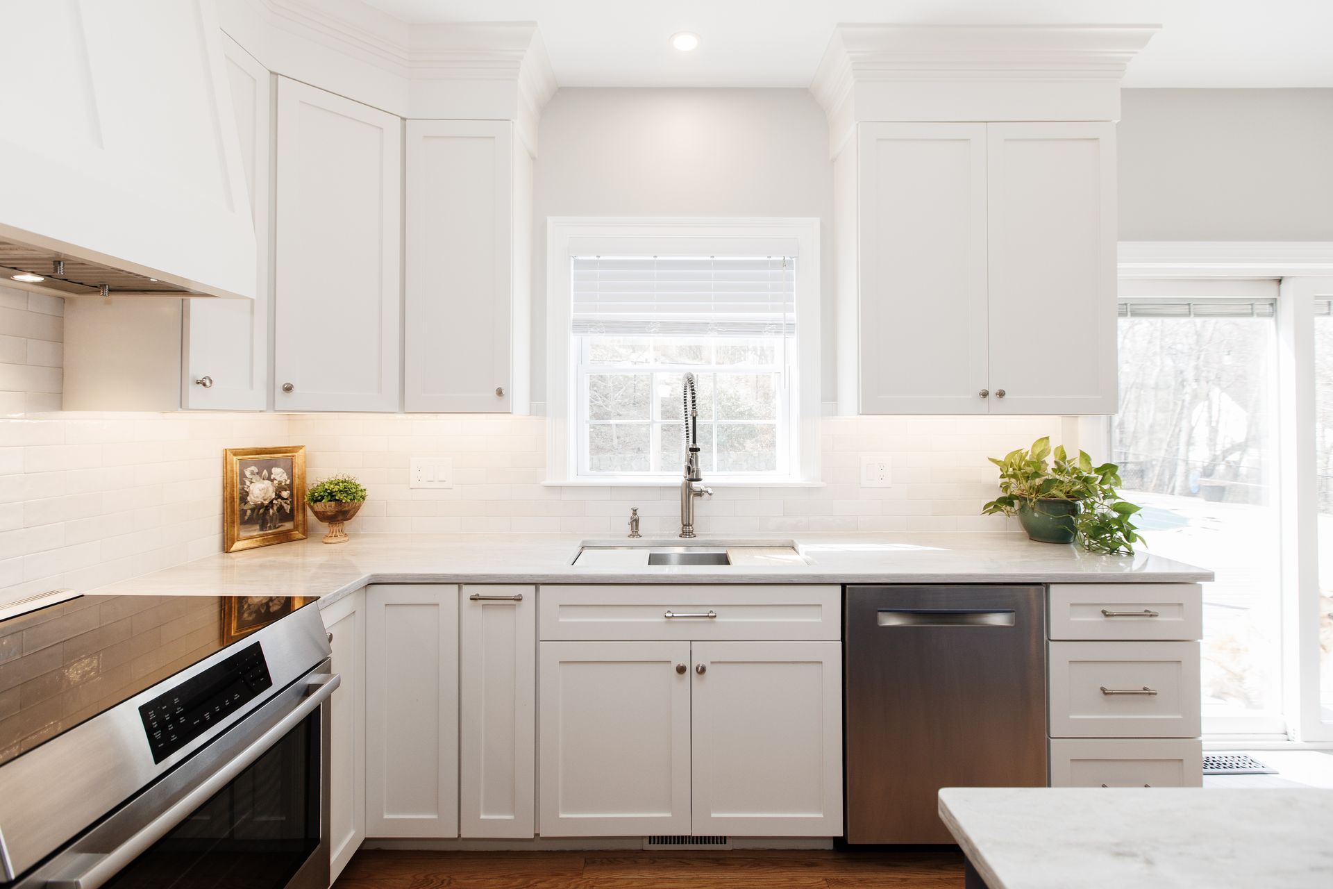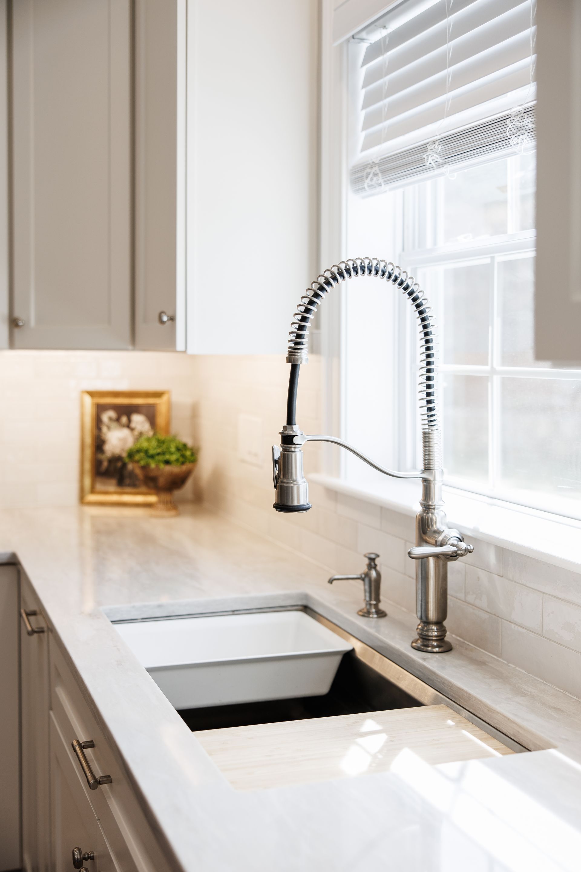 Our clients came to us with a vision: a brighter, more functional kitchen that still felt inviting and timeless. They opted for our full Kitchen Refresh experience, which includes cabinet painting, new quartz counters, a ceramic glazed subway tile backsplash, a new Kohler sink and faucet, and sleek TopKnob hardware. But they didn’t stop there.