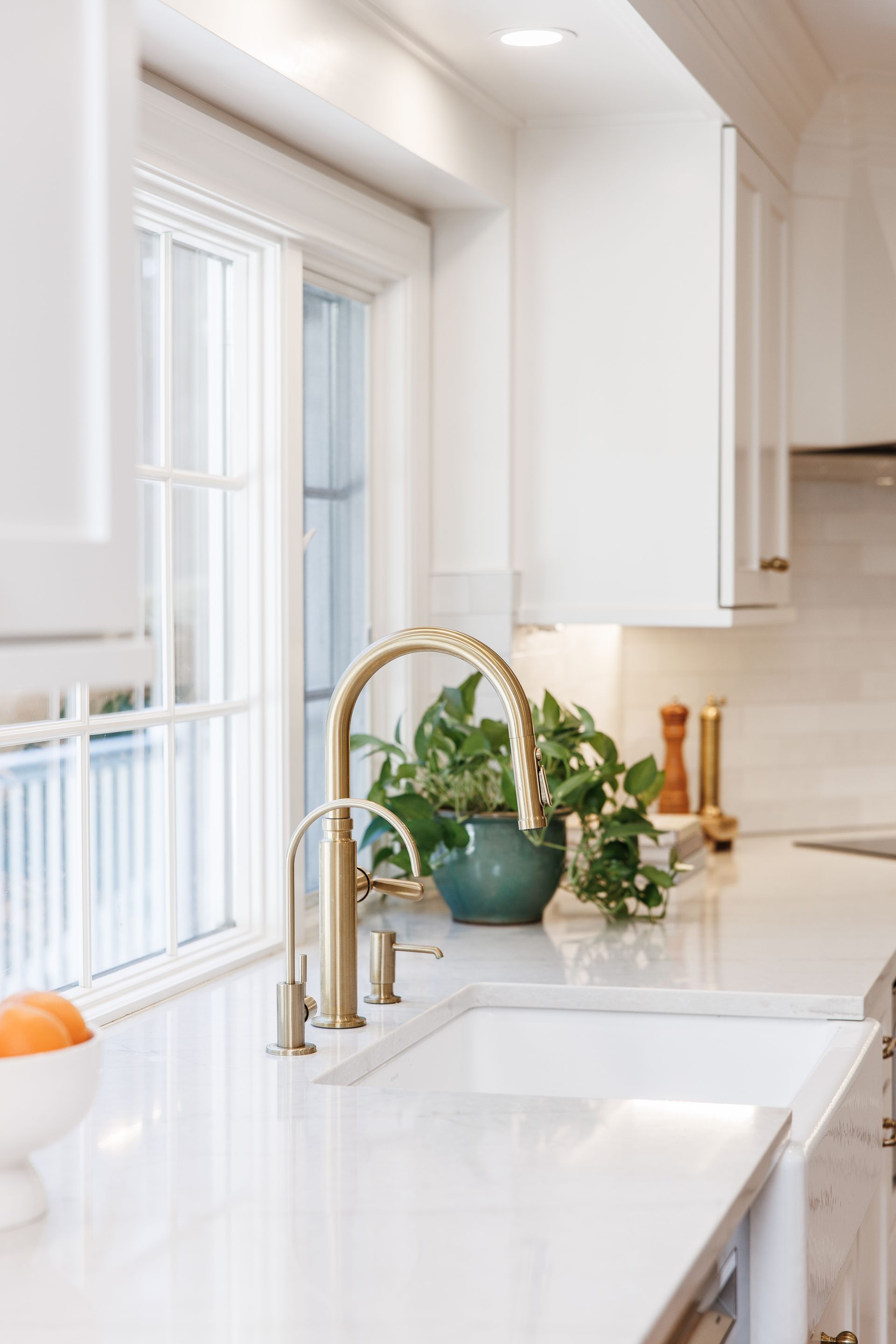No kitchen refresh is complete without the perfect finishing touches. We helped the family select new countertops, backsplash, sink, faucet, knobs, and pulls—all carefully chosen to complement the home’s charm while infusing it with modern style. The result is a bright and functional kitchen that embraces both the past and the present.
