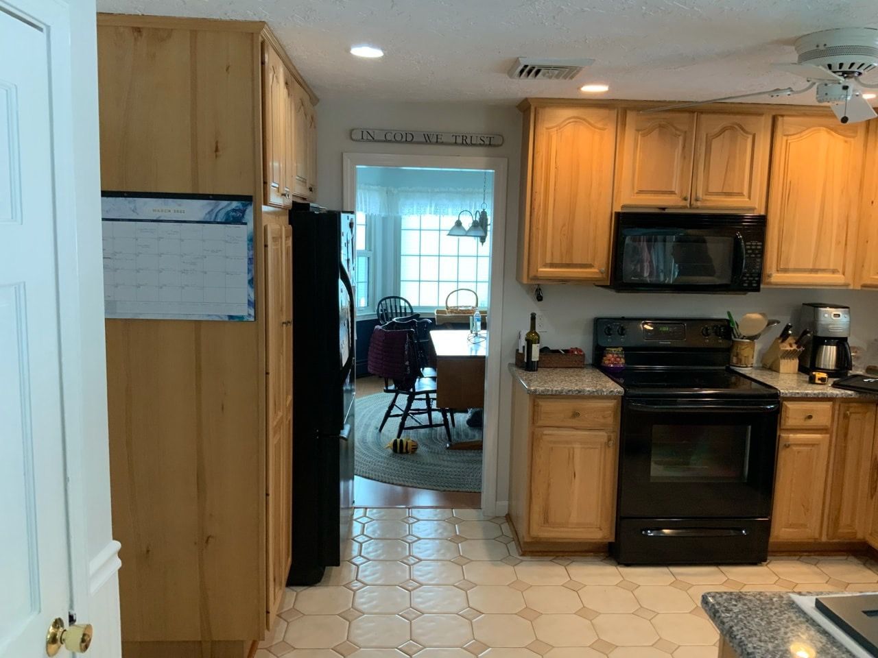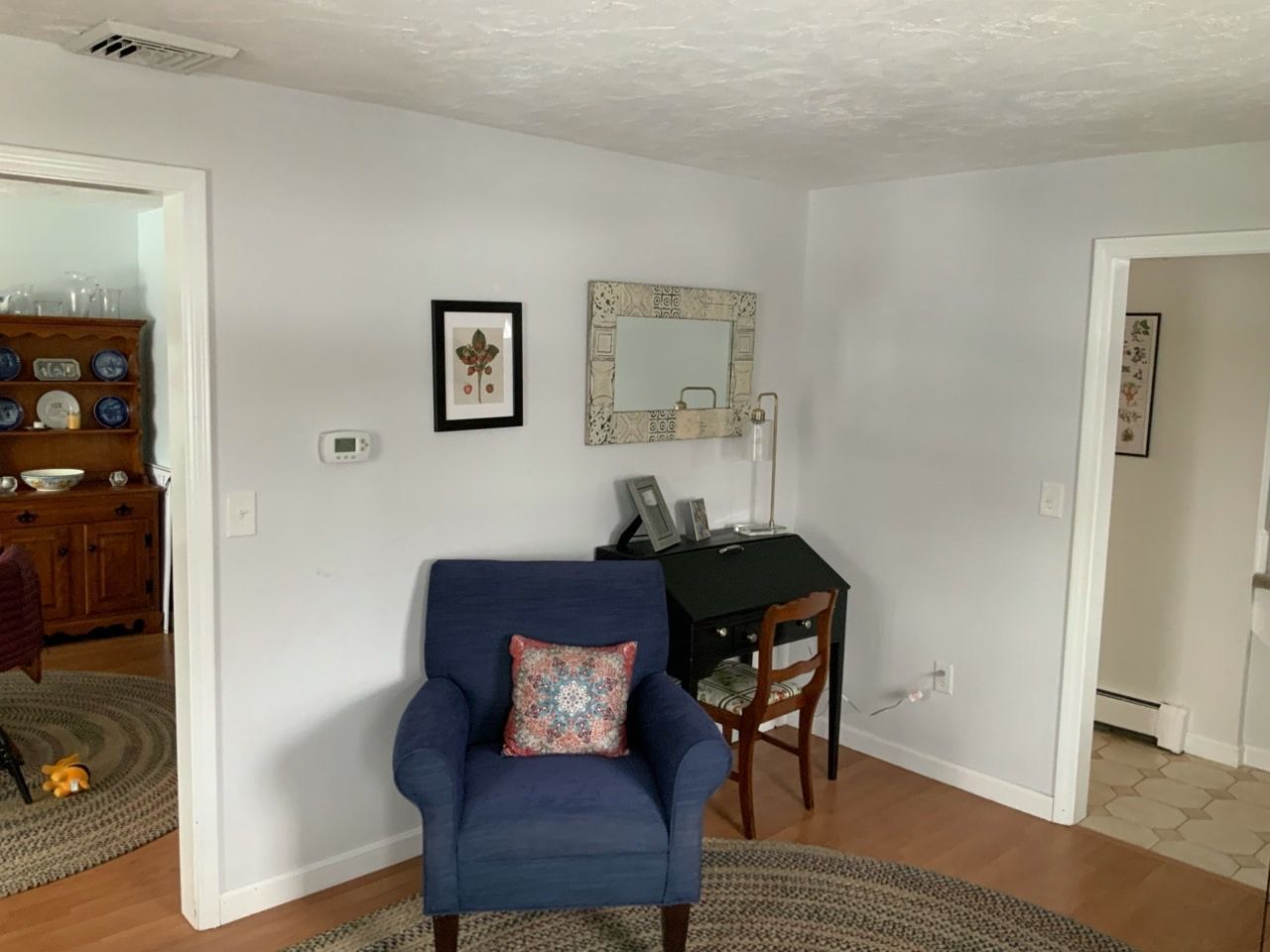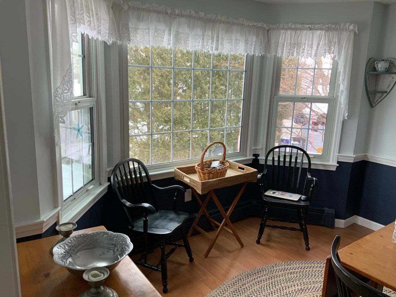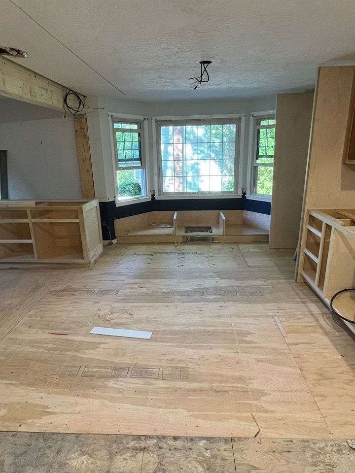 A standout addition to the space is a custom-built bench below the bay window in the former dining room. This inviting nook not only enhances the home's warmth and charm but also serves multiple purposes—offering a bright and cozy place to rest your feet while cooking, curl up with a book, or tackle homework. It’s a perfect example of how thoughtful design can make a home feel both stylish and lived-in.